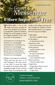 A customizable Gospel Messenger for Christmas 2025 is available for order until the end of November. Please contact either office for more information and to place an order.